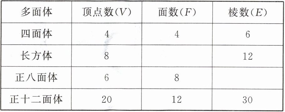 (1)根据图中的多面体模型,完成表格:
