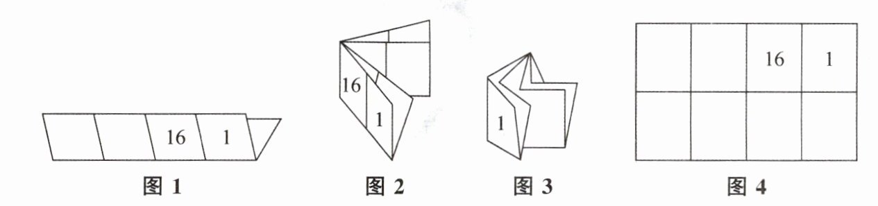 9. 印刷一本书,为了使装订成书后页码恰好为连续的自然数,可按如下方法操作:先将一张整版的纸,对折一次为4页,再对折一次为8页,连续对折三次为16页……然后再排页码.如果想设计一本16页的毕业纪念册,请你按图1、图2、图3(图中的1,16表示页码)的方法折叠,在图4中填上按这种折叠方法得到的各页在该面相应位置上的页码.