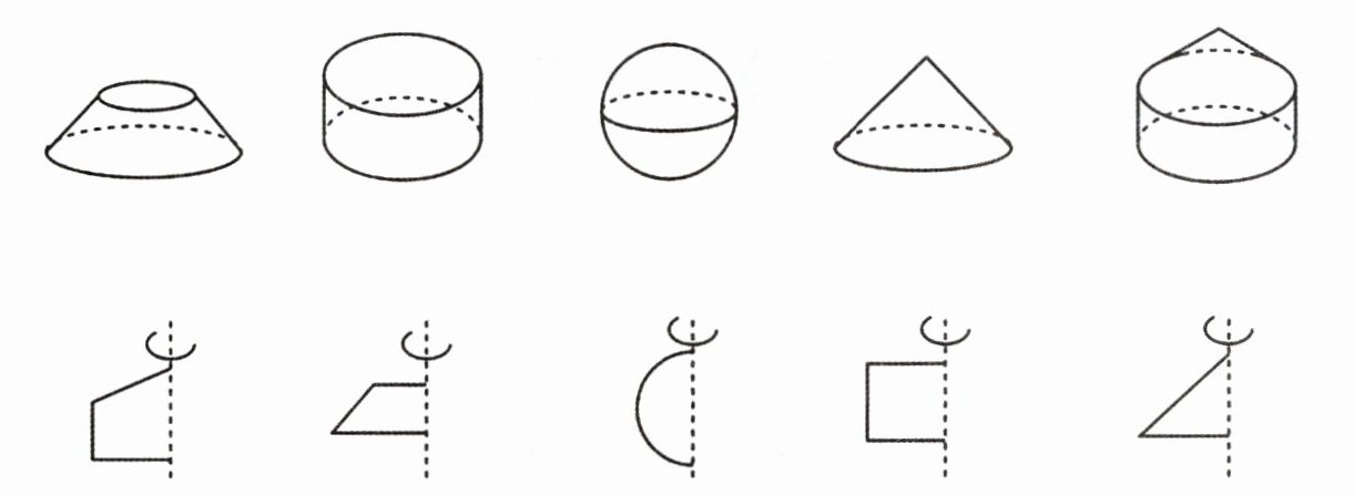 8. 如图,第二行的图形绕虚线旋转一周,便能形成第一行的某个几何体,用线连一连.