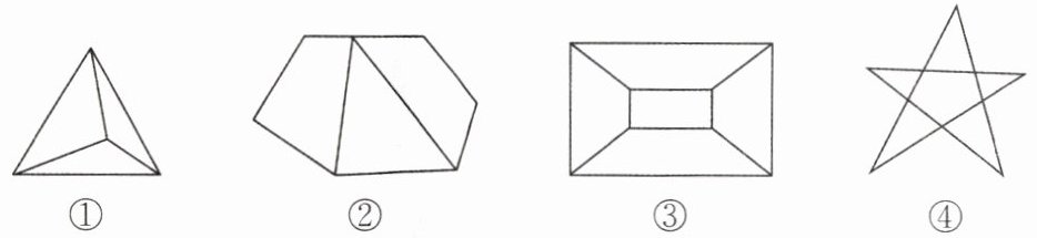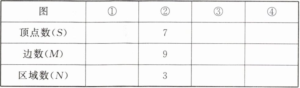 (1)数一数每个图中各有多少个顶点、多少条边,这些边围出多少个区域,并填表: