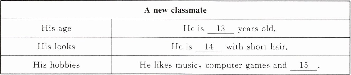 听第一篇短文,回答第13~15小题,请根据短文内容,选择正确答案,完成信息记录表。答题完毕,请等待"嘀"的信号,进入下一篇短文。