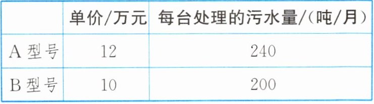 11. 某市污水处理厂用102万元购买A,B两种型号的污水处理设备共10台,其信息如下表: