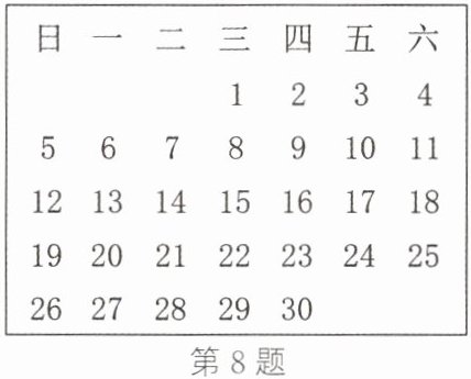 8. 在如图所示的月历中,任意框出竖列上三个相邻的数,则这三个数的和不可能是( )