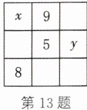 13. (教材P58数学活动变式)把1~9这9个数填入3×3的方格中,使其任意一行,任意一列及两条斜对角线上的数之和都相等,这样便构成了一个“九宫格”,它源于我国古代的“洛书”,是世界上最早的“幻方”.如图是仅可以看到部分数的“九宫格”,则其中x-y= .