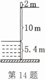 14. 如图,一名跳水运动员参加10m跳台的跳水比赛(10m跳台是指跳台离水面的高度为10m),这名运动员举高手臂时身长为2m,跳水池池深为5.4m(规定向上为正).