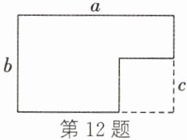 12. 如图,从长为a、宽为b的长方形纸片中剪去一个边长为c的正方形,余下纸片的面积为______.