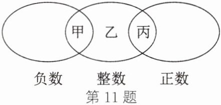 11. 如图所示的圈分别表示负数、整数和正数,其中有甲、乙、丙三个部分,则关于这三个部分的数的个数,下列说法正确的是( )