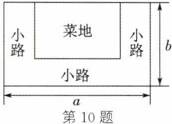 10. 如图,池塘边有一块长为a、宽为b的长方形土地,现将其余三面留出宽都是2的小路,中间余下的长方形部分做菜地,则菜地的周长为______.