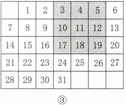 (1)请你根据上述的探究过程,猜测如图③所示的涂色框中的9个数的和与方框正中间的数有什么关系,并说明理由.