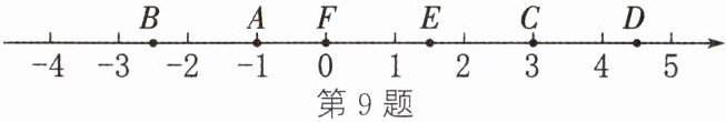 9. 如图,指出数轴上的点 A,B,C,D,E,F 所表示的数.