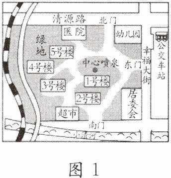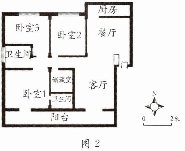 (北京中考)小鹤随父母前往某小区看房。图 1 为北京某小区平面示意图,图 2 为图 1 中 1 号楼某户型图。读图,完成 5~7 题。