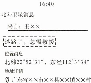 3. 北斗导航系统通过确定用户的经纬度来定位。短信中的坐标位于(