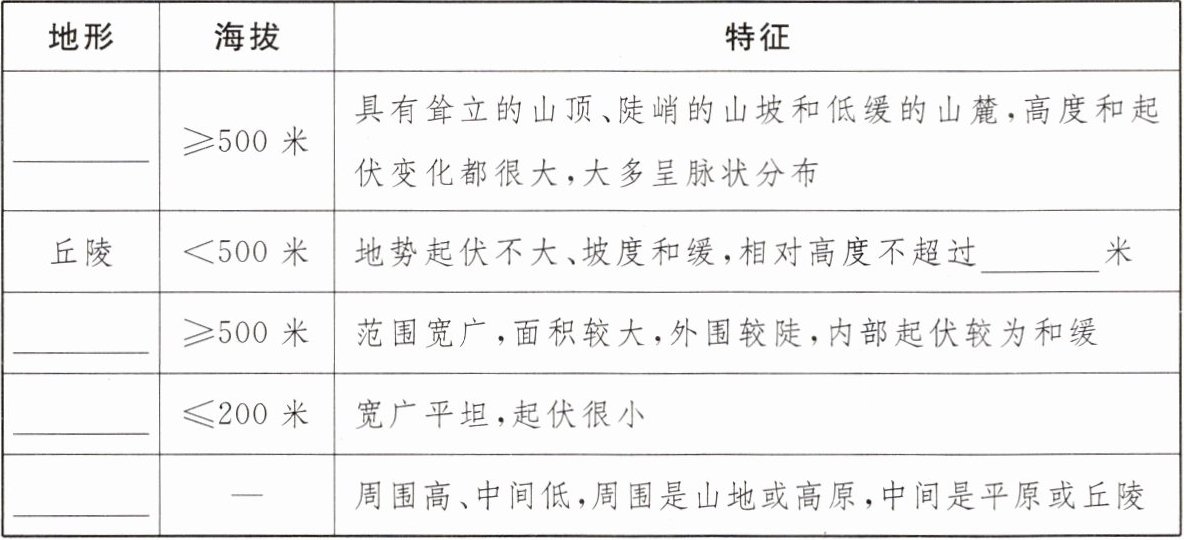 5. 陆地五种基本地形类型。
