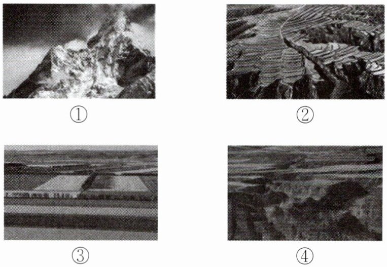 4. 下列关于图中景观与地形类型的匹配,正确的是(