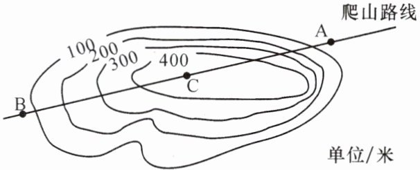 (3)若分别从 B 点和 A 点到达山顶 C 点,则人们的实际感受是(