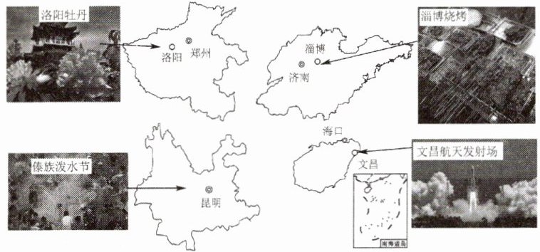 18. “淄博邀你去烧烤,洛阳喊你赏牡丹,到西双版纳去泼水,来海南文昌看火箭”是2023年网络热门话题,都与地理密切相关。下图示意我国部分省级行政区轮廓,读图,回答下列问题。(10分)