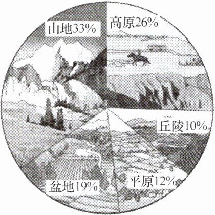 读我国五种地形面积比例构成图,完成 1~3 题。