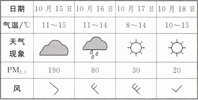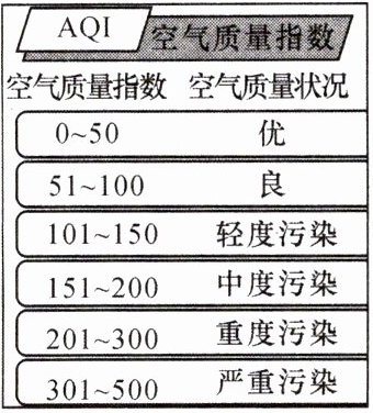 (2)西北风6级,沙尘暴。空气质量指数越大,表明空气质量状况越差;空气质量指数越小,表明空气质量状况越优。