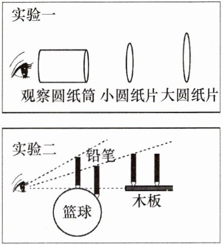 (2) 根据实验一现象,请你解释为什么在地球上看太阳和月球差不多大?