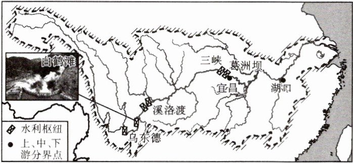 2023年杭州亚运会举办期间,白鹤滩水电站累计向浙江输送电能达22.3亿度,相当于减排二氧化碳184万吨,助力打造首届碳中和亚运会。下图为长江水系主要水电站分布图,据此完成6~8题。