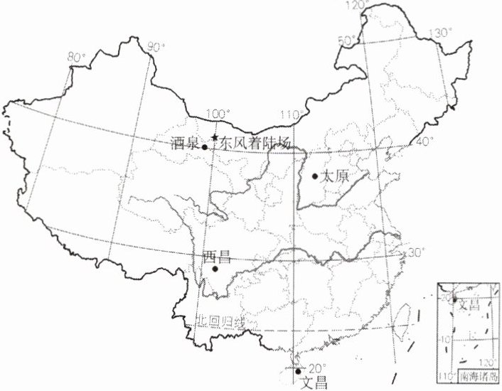 (航空工程)2024年11月4日,神舟十八号载人飞船返回舱在东风着陆场成功着陆。下图示意我国四大卫星发射中心及东风着陆场位置。读图,完成10~11题。