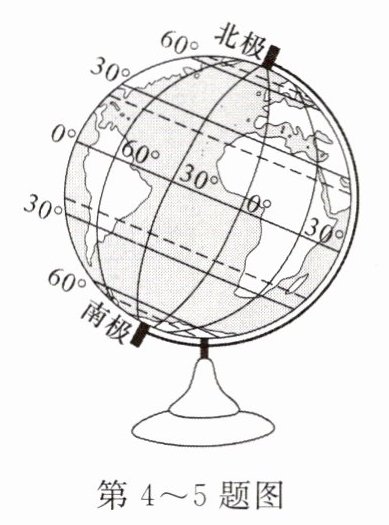 上完地理课后,小明和小静准备再次观察地球仪,总结地球仪上经线和经度的特点。读图,完成4~5题。