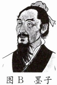 学派创始人;图B人物是墨家学派的创始人,主张“兼爱