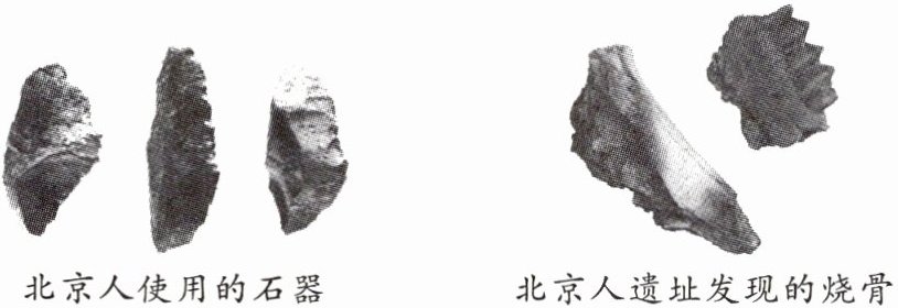 (3)结论:①北京人会制造工具(石器);②北京人已经会使用火。(每点1分,共2分) 主要依据:化石。(1分)