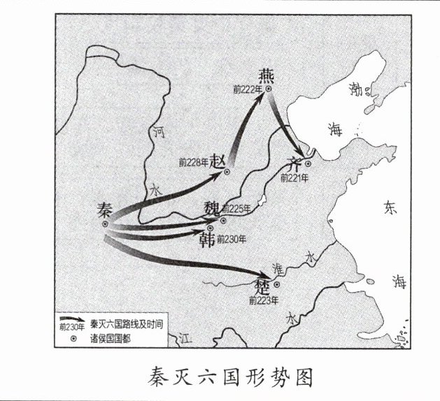 (1)依据材料一图片,指出秦灭六国采取的策略。(1分)结合所学知识,简述秦统一中国的历史意义。(2分)依据材料一文字,概括秦朝郡县制的特点。(2分)