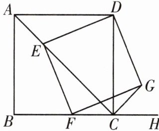 14. (10分)如图,已知四边形ABCD为正方形,$AB= \sqrt{2}$,点E为对角线AC上一动点,连结DE,过点E作$EF⊥DE$,与BC相交于点F,以DE、EF为邻边作矩形DEFG,连结CG.