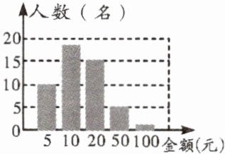 7. 某班组织“捐零花钱,献爱心”活动,全班50名学生的捐款情况如图所示,则本次捐款金额的众数是
