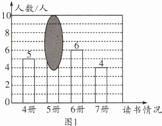 (1)求条形图中被遮盖的数,并写出册数的中位数.