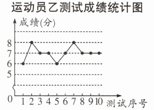 (1)运动员甲测试成绩的众数和运动员乙测试成绩的中位数都是7分.