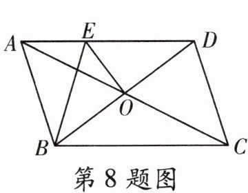8. 如图,平行四边形ABCD的周长是$12cm$,对角线AC、BD相交于点O,$OE⊥BD$交AD于点E,则$\triangle ABE$的周长为