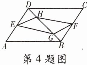 4. 如图,在$□ ABCD$中,E、F分别是AD、BC边的中点,G、H是对角线BD上的两点,且$BG= DH$,则下列结论中不正确的是(