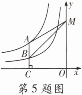 5. 如图, 点$A是双曲线y= \frac {16}{x}(x<0)$上的一点, 点$B是双曲线y= \frac {6}{x}(x<0)$上的一点,$AB所在直线垂直x轴于点C$, 点$M是y$轴上一点, 连结$MA$、$MB$, 则$\triangle MAB$的面积为 (