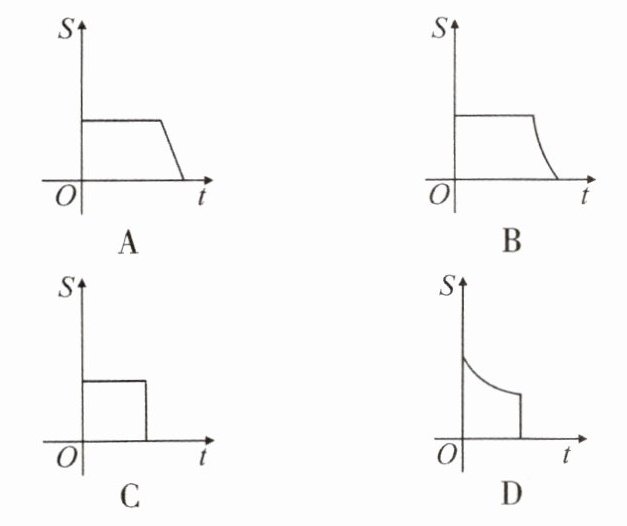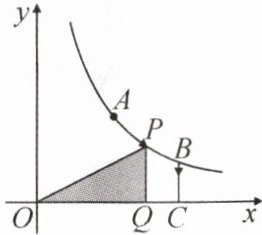 4. 如图, 已知$A$、$B是反比例函数y= \frac {k}{x}(k>0,x>0)$图象上的两点,$BC// y$轴, 交$x轴于点C$. 动点$P从点A$出发, 沿$A→B→C$匀速运动, 终点为$C$. 过点$P作PQ⊥x轴于Q$. 设$\triangle OPQ的面积为S$, 点$P运动的时间为t$, 则$S关于t$的函数图象大致为 (