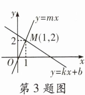 3. 如图所示, 一次函数$y= kx+b$($k$、$b$是常数, 且$k≠0$)与正比例函数$y= mx$($m$是常数, 且$m≠0$)的图象相交于点$M(1,2)$, 下列判断不正确的是 (