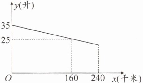 例3 李老师开车从甲地到相距240千米的乙地,如果油箱剩余油量y(升)与行驶里程x(千米)之间是一次函数关系,其图象如图所示,那么到达乙地时油箱剩余油量是____
