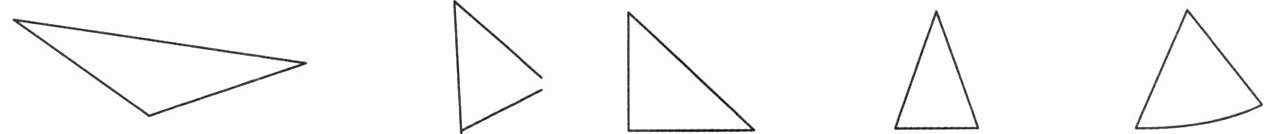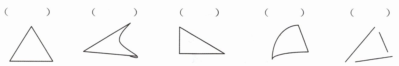 2. 判断下面图形哪些是三角形,是三角形的在括号里画“√”,不是的画“×”。