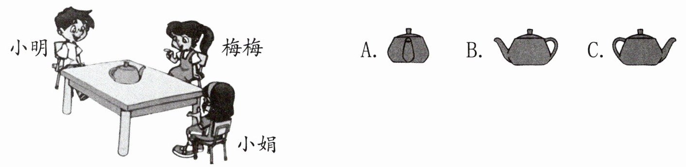 2. 小朋友从不同角度观察茶壶,小明看到的是(