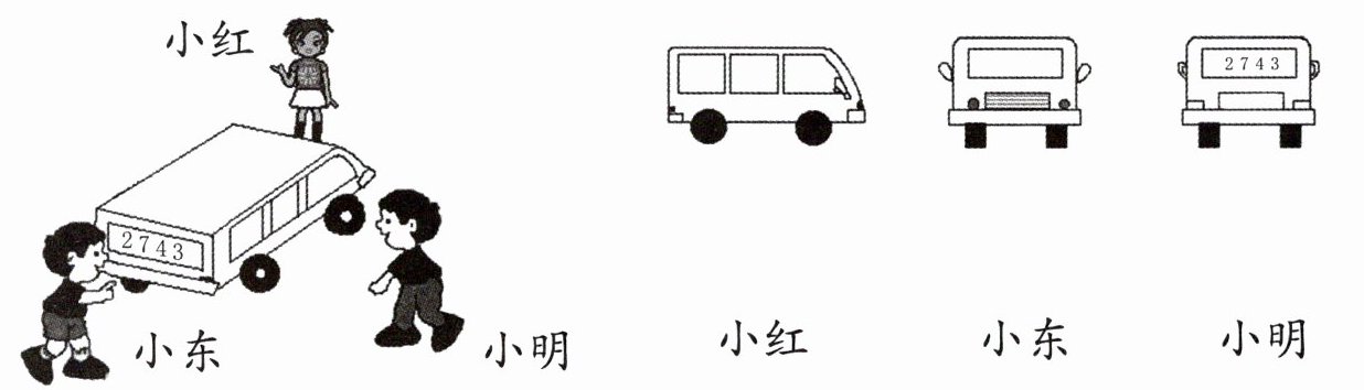 1. 下面的几幅图分别是谁看到的?连一连。