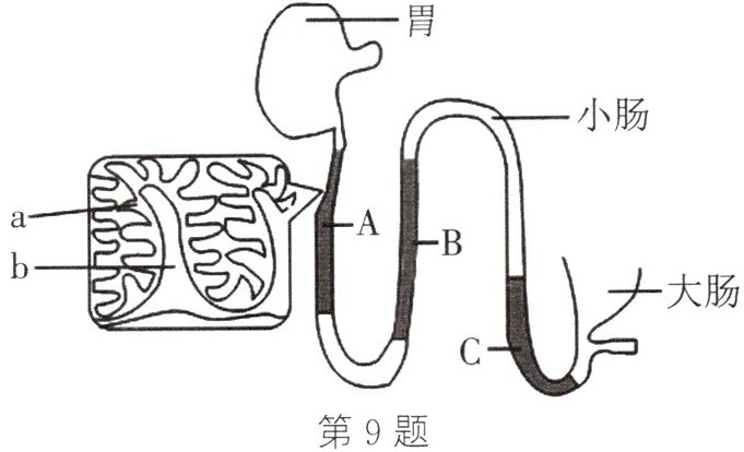 (1)图中______(填字母)为小肠绒毛,可______小肠的表面积。