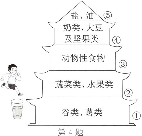 4. (2025·青岛期中)如图所示为“平衡膳食宝塔”,有关叙述正确的是( )