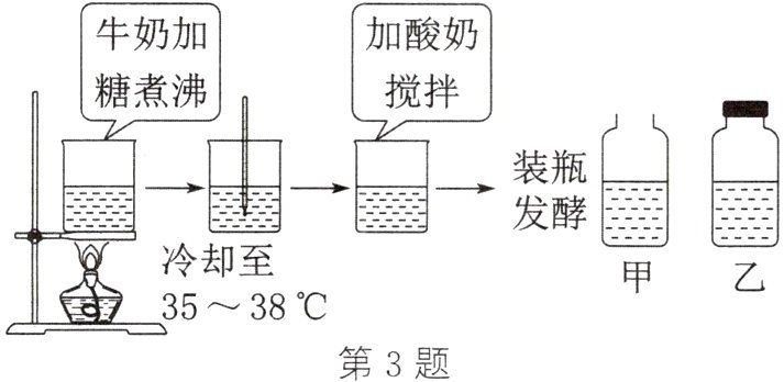 4. 小科的妈妈用酸奶机制作了酸奶,这引起了小科的兴趣。图甲是妈妈制作酸奶的三步曲。