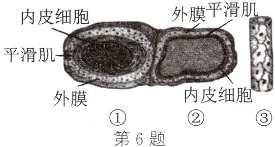 6. (2024·无锡)如图是人体的三种血管结构示意图,下列叙述错误的是( )