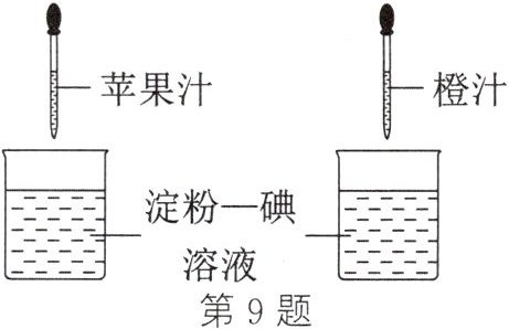 9. 根据维生素C能够使淀粉—碘溶液褪色的原理,利用如图实验比较两种果汁中维生素C含量的多少。实验过程中不需要控制的条件是(滴管中果汁体积相同) ( )