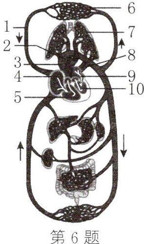 6. (2024·牡丹江)如图是人体血液循环示意图,据图回答问题。