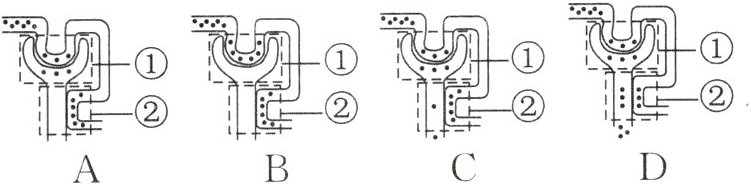 4. (核心素养)如图是健康人正常尿液的形成过程示意图。①②部位发生了重要生理作用,“·”表示某成分。能模拟尿素排出过程的是( )