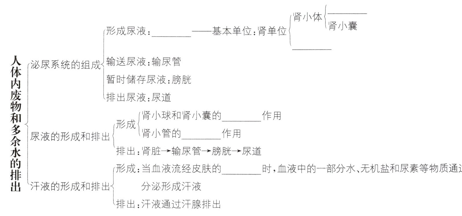 形成:当血液流经皮肤的______时,血液中的一部分水、无机盐和尿素等物质通过汗腺的分泌形成汗液